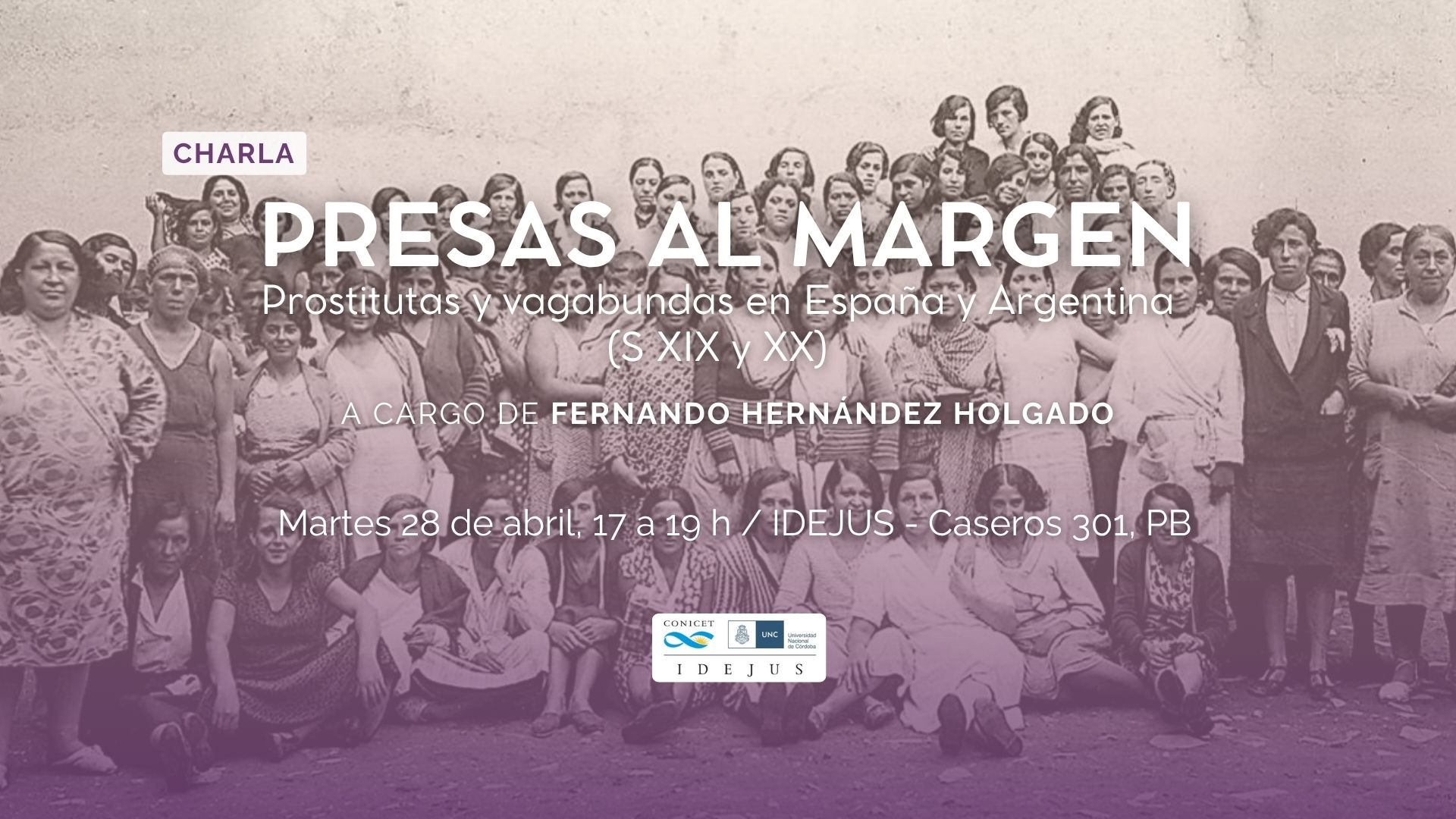 El IDEJUS invita a la Charla Presas al margen. Prostitutas y vagabundas en España y Argentina (siglos XIX y XX), a cargo de Fernando Hernández Holgado, investigador de la Universidad Complutense de Madrid. Día: 28/4, de 17 a 19h. Lugar: Caseros 301, IDEJUS. INSCRIPCIONES