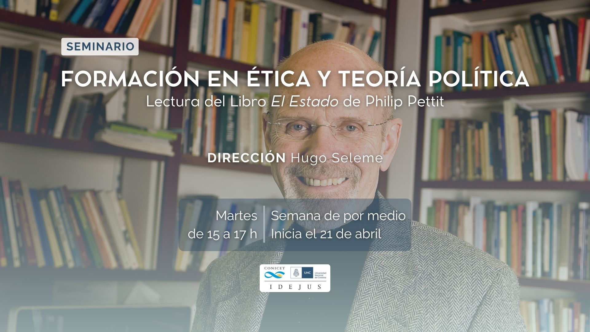 El seminario consiste en Lectura de la traducción al castellano del libro "The State" (2023) de Philip Pettit, con sesiones cada dos semanas, en las que se presenta y se discute un capítulo por reunión. El mismo tiene los siguientes objetivoso